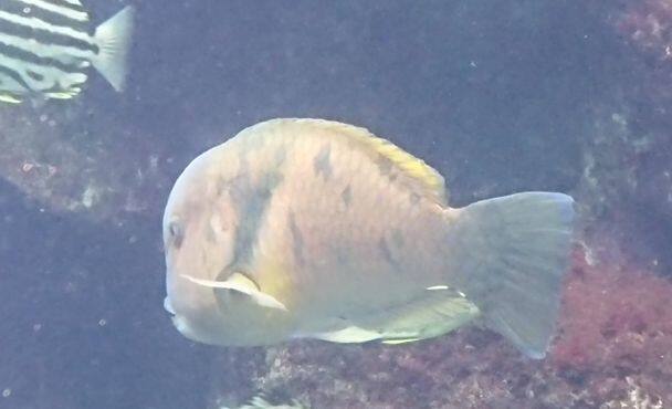 ハタ科生息地:南日本、中・西部太平洋やや深場の岩礁域に群れをつくって生息しています。やや深場にいる魚ですが錦江湾では数mの浅場でも見られるそうです。メスからオスに性転換し模様が変わります。群れの中でのリーダー格がオスになり残りはメスのままハーレム状態になるそうですが水槽の中ではオス化するものが多くな...